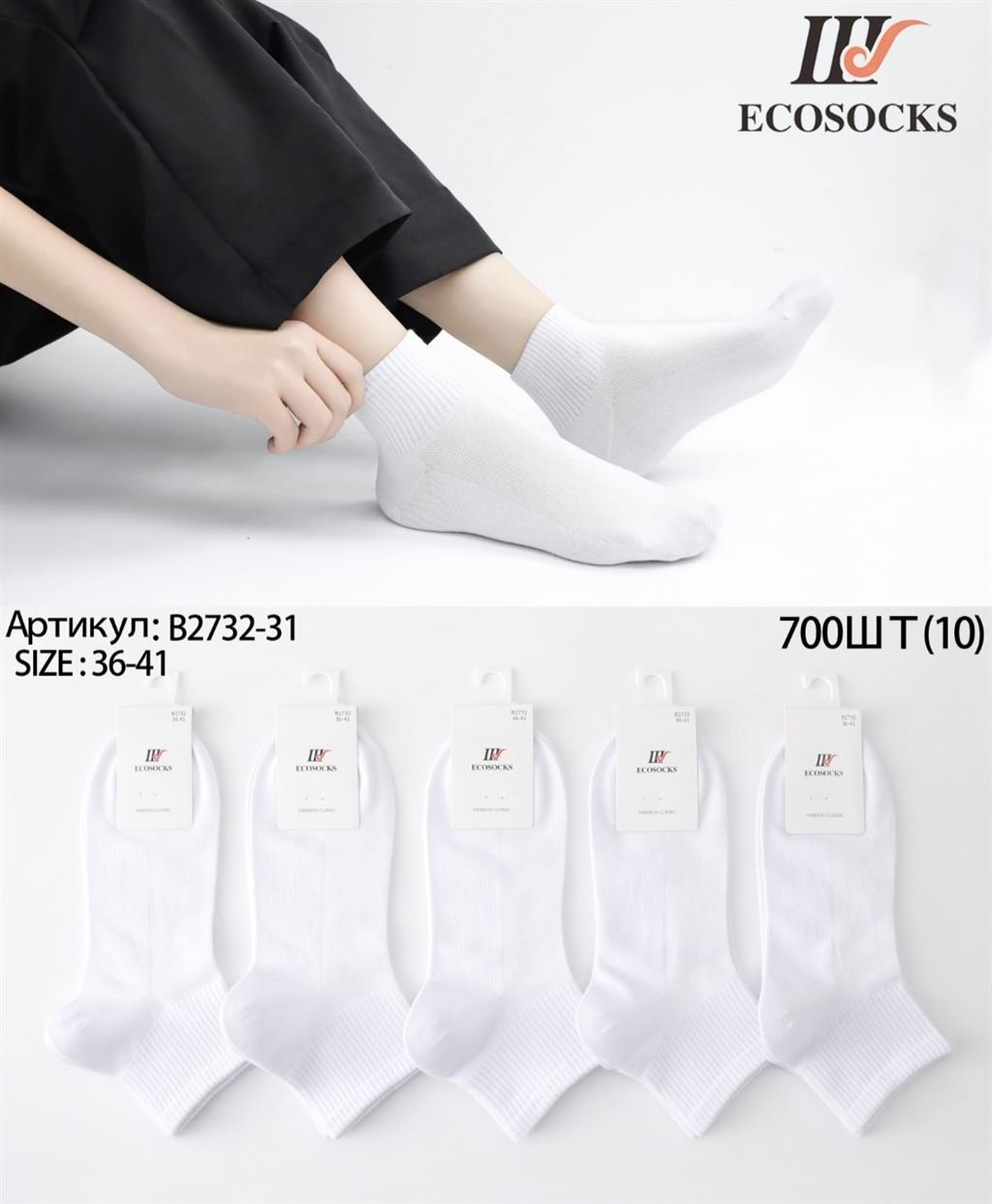 2732-31 Шкарпетки жін. Ecosocks х/б білі кор. р.36-41 (ціна за 10шт)