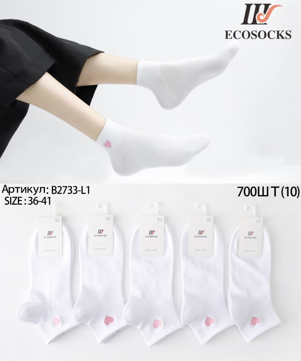 2733-L1 Шкарпетки жін. Ecosocks х/б білі кор. р.36-41 (ціна за 10шт)