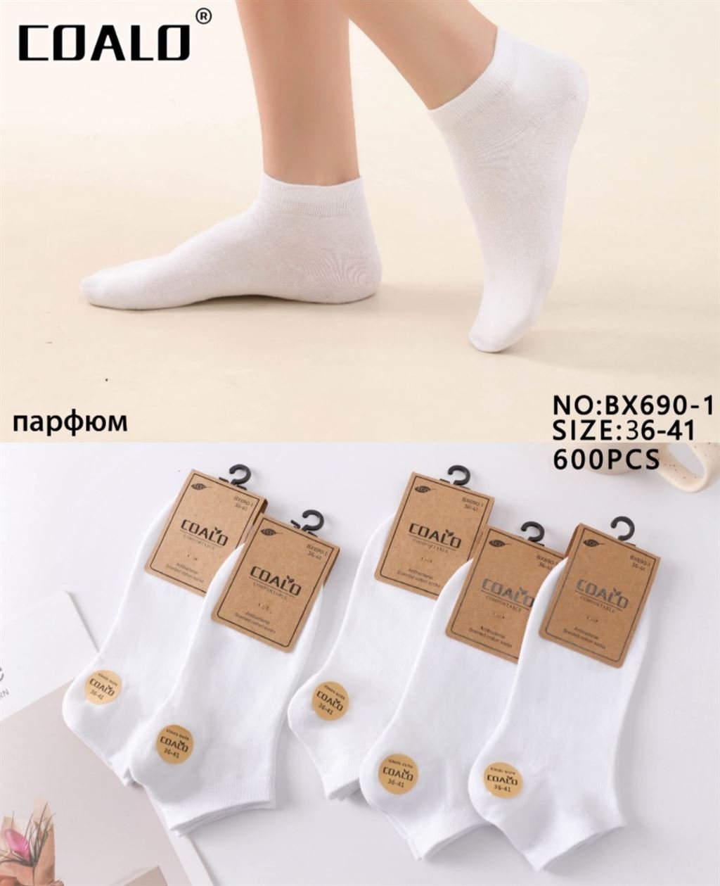690-1 Шкарпетки жін. COALO х/б кор. білі р.36-41 (ціна за 10шт)