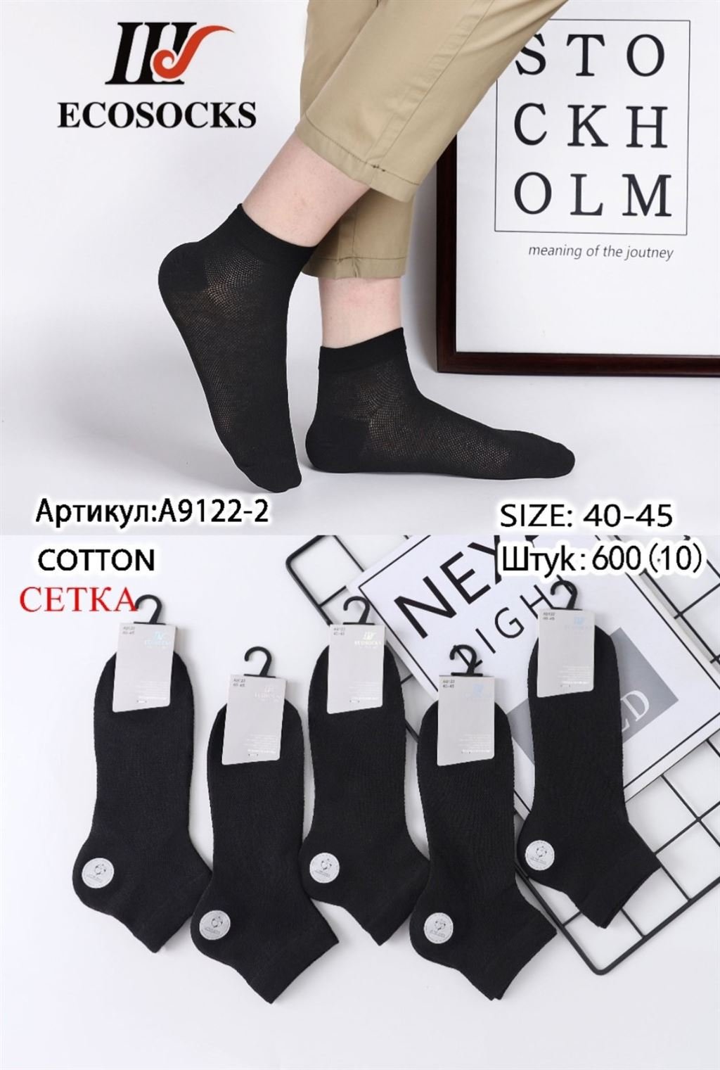 А-9122-2 Шкарпетки чоловічі ECOSOCKS х/б кор. чорні р.40-45 (ціна за 10шт)