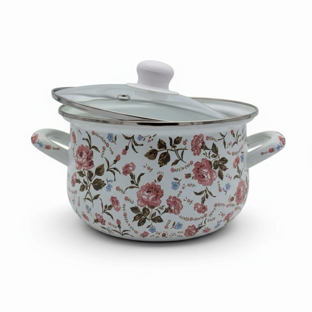 Каструля емальована скл/кришка 3,0л VERONA Букет квiтiв